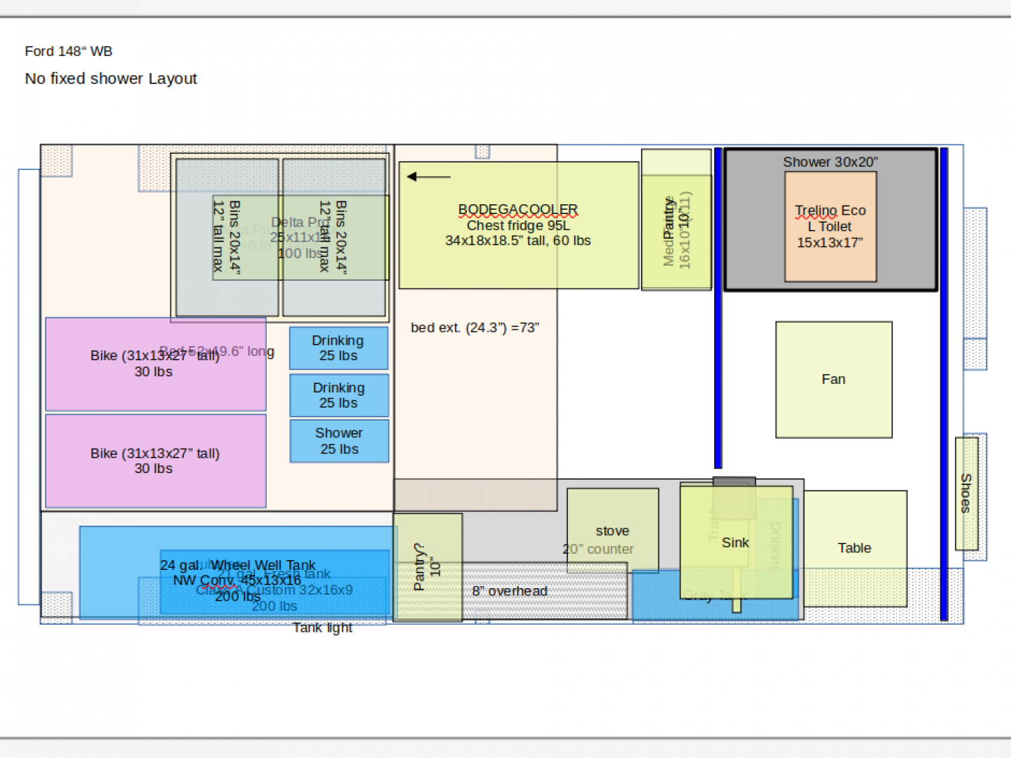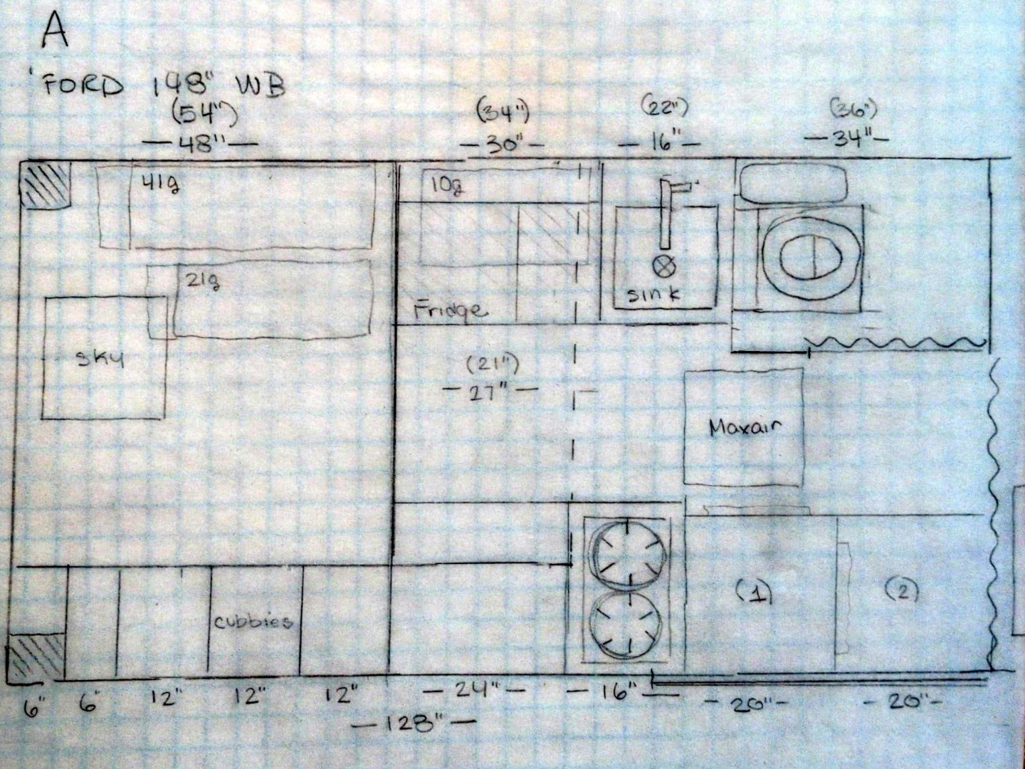 Once we answered these philosophical questions, we needed to decide which van would handle these demands best. Sprinters are diesel and finding a repair shop is more frustrating than booking a Yosemite campsite in peak season! Repairs are also expensive! With a Ford, a coat hanger and a roll of duct tape will get us another 100 miles to the shop. Promasters are only available with front wheel drive and I didn’t want to put the lion’s share of build weight over the rear axle in a FWD vehicle.